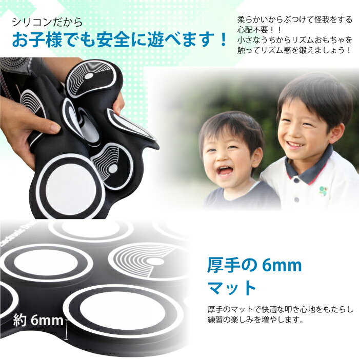 ソナー、Cubase、Nuendo、Ezdrummer(MIDI機能を搭載したモデルのみ動作します) ・ 誕生日プレンゼント クリスマスプレンゼント に オススメ ・ プレンゼント 練習 に 誕生日 クリスマス 子供 男の子 女の子 3歳 小学生 【機能】 ・ドラムパッド:クラッシュシンバル、ライドシンバル、開閉ハイハット、スネア ハイトーン、ロートーン、フロアトーンなど ・ペダル:ハイハット、ベースドラム ・12デモ曲演奏、7ドラム音、9音楽 ・ボリュームコントロール:9段階調 ・スピードコントロール:15段階 ・録音/再生可能 ・オーディオ出力/入力は携帯電話、タブレット、PCなど音楽をサポートするデバイスに対応 内容 サイズ:長さ42.2 x横幅32.5 x高さ6.2 cm 重量:680g 入力:USB DC 5V / 2000MA 材質:シリコン 《ご注意》 ・必ず取扱い手順書をご確認下さい→【手順書はコチラ】 ・【初期不良の場合】 到着後3日以内にご連絡頂いた場合商品保証させて頂きます。